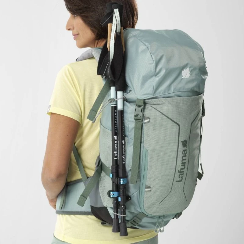 Sa nouvelle matière en nid d’abeille est agréable au toucher et se fait remarquer ! Ce sac regorge de détails techniques comme les sangles de rappel pour bien plaquer sur le dos, une ouverture de fond de sac pour accéder à la veste de pluie en cas d’averse soudaine, des sangles permettent de porter un sac de couchage ou une tente, sans oublier les porte-bâtons… La poche mesh sur le devant est particulièrement maline, elle permet de glisser et d’accéder facilement à une carte, une paire de gants ou un bonnet.